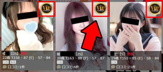 NS/NNプレイに対応する女の子の目印は、女の子のプロフィール写真の上部に「VIP」マークが付いているかどうかです。