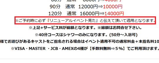 新人割・フリー割・口コミ割など、総額を安くするイベントも目白押しでした!